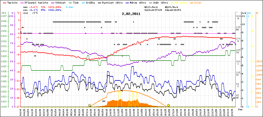 Minimální teplota:-6.1°C v 07:30