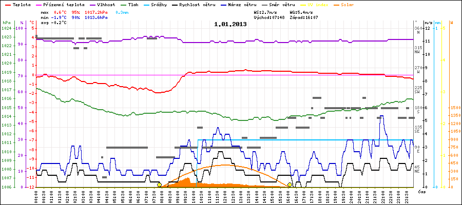 Maximální teplota:0.6°C v 13:15