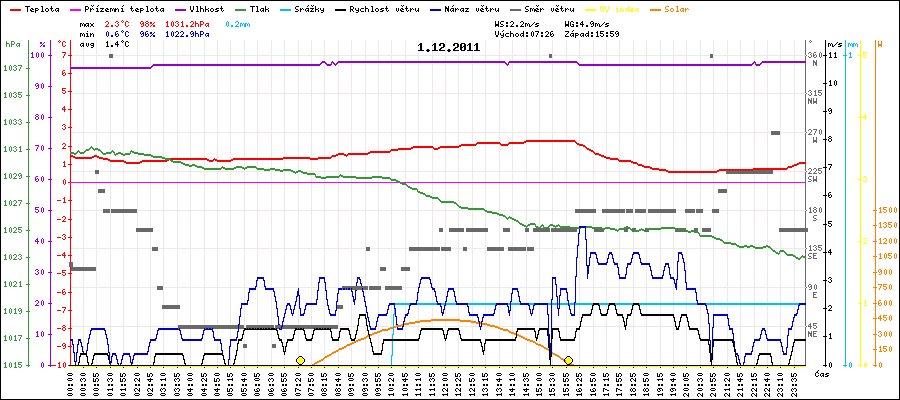 Maximální teplota:2.3°C v 14:35