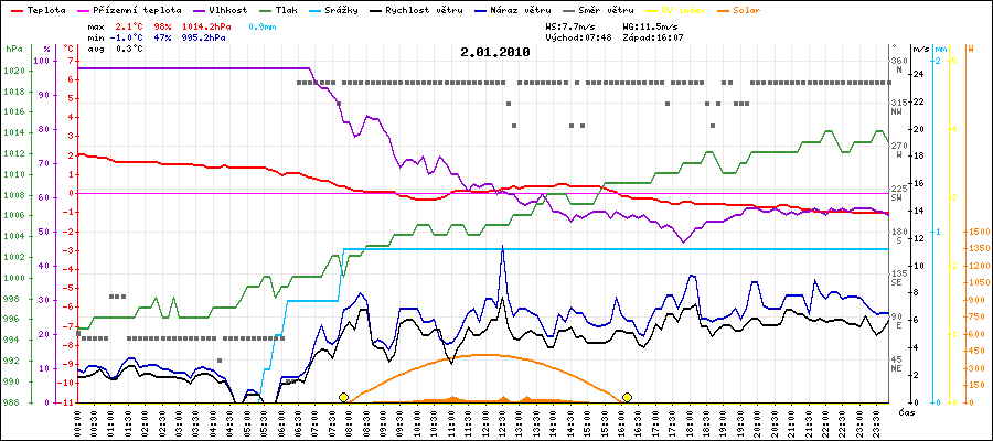 Maximální teplota:2.1°C v 00:00