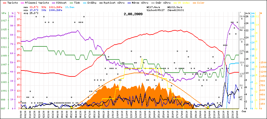 Maximální teplota:33.5°C v 17:30
