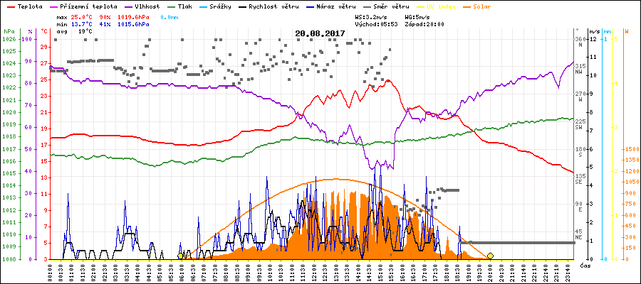 Minimální teplota:13.7°C v 23:55