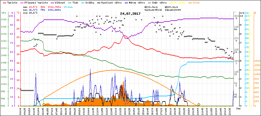 Minimální teplota:16.9°C v 23:50