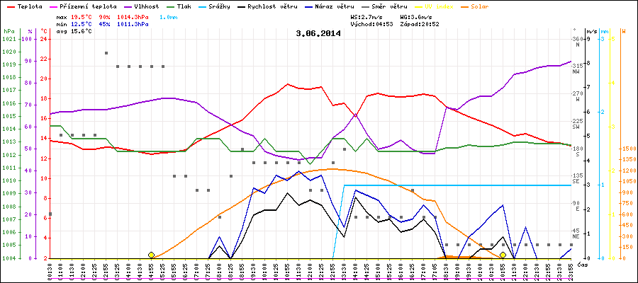 Maximální teplota:19.5°C v 10:55