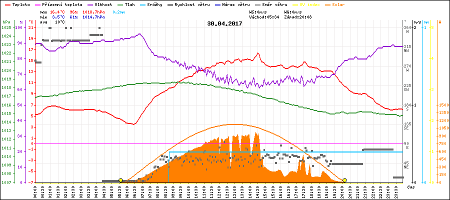 Maximální teplota:16.4°C v 14:30