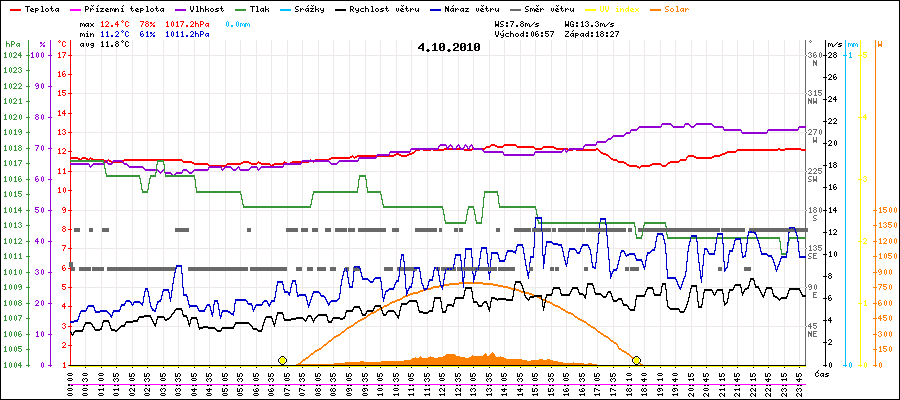 Maximální teplota:12.4°C v 13:40