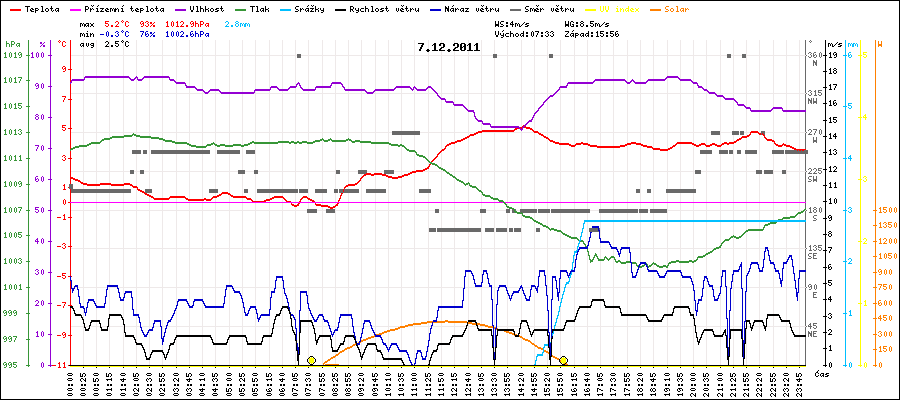 Maximální teplota:5.2°C v 14:30