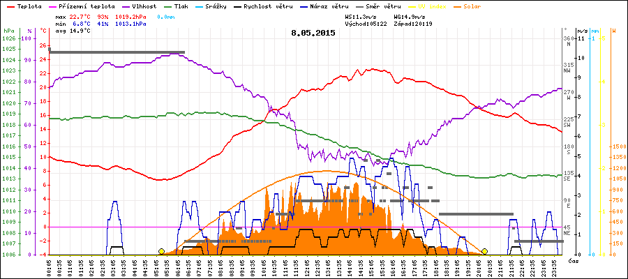 Maximální teplota:22.7°C v 15:05