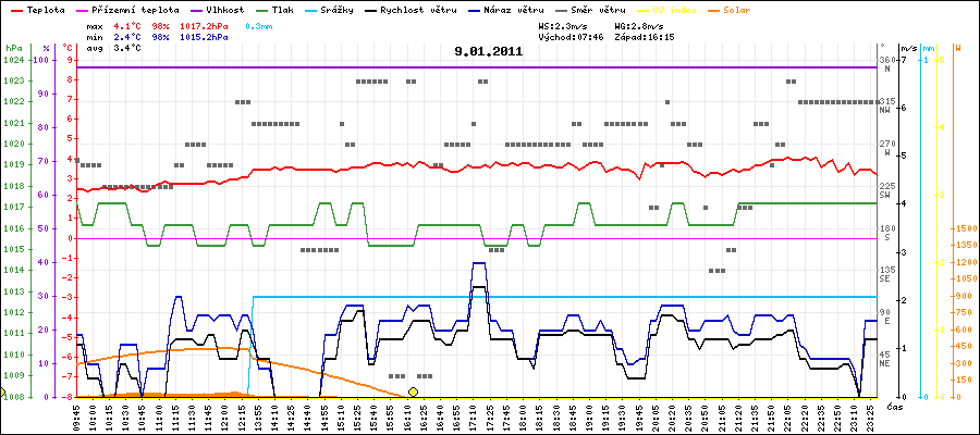Minimální teplota:2.4°C v 09:55